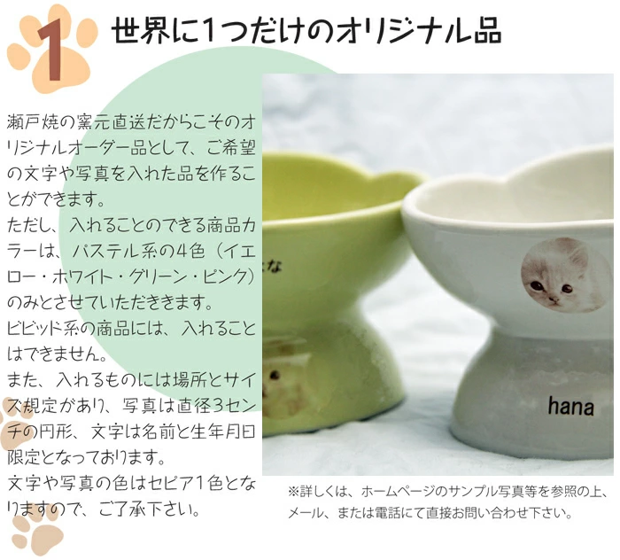 猫、犬用フードボウルで、名入れ、写真入れが可能な世界に1つだけのオリジナルな特別な器です