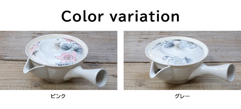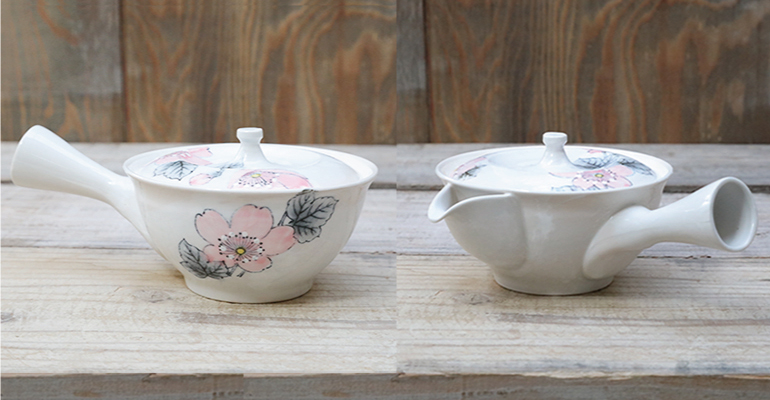 伝統的な粉引きを使い花柄で可愛く仕上げた急須