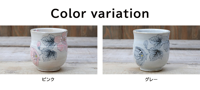 伝統的な粉引きを使い花柄で可愛く仕上げた湯呑