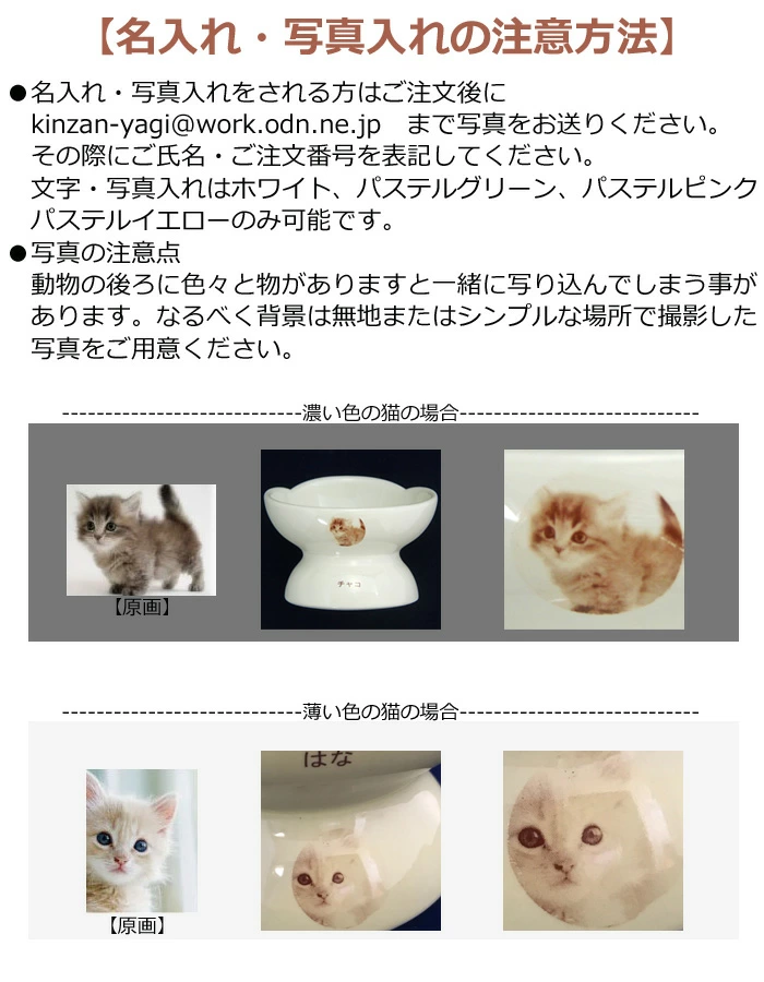 猫、犬用フードボウルで、名入れ、写真入れが可能な世界に1つだけのオリジナルな特別な器です