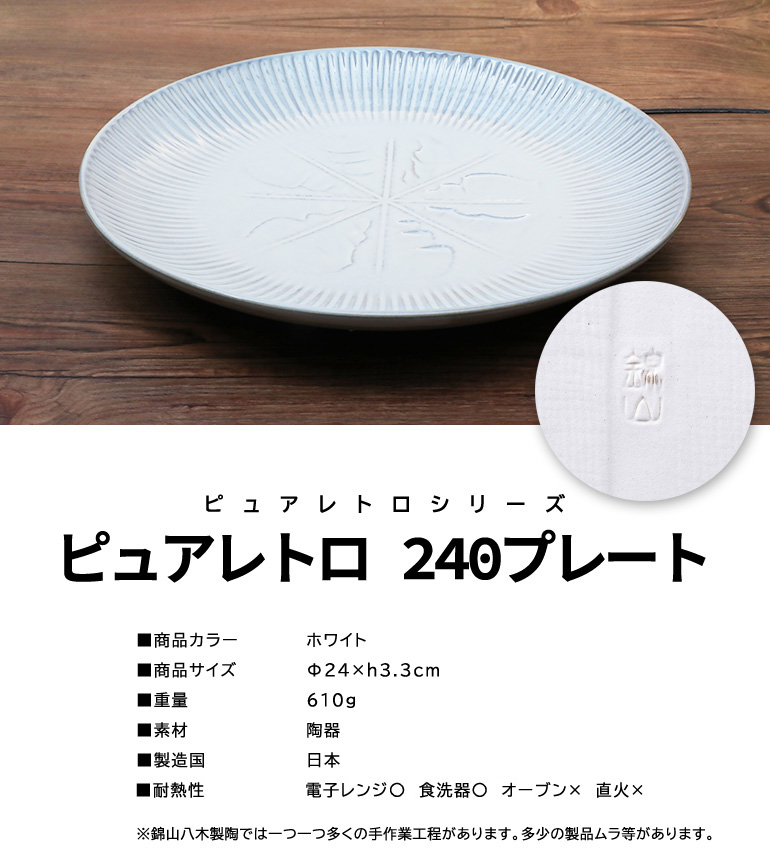 直径240mmの丸いプレート皿です。メイン料理や盛皿としても、またワンプレートのカフェ風も楽しるサイズです。